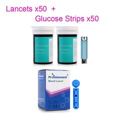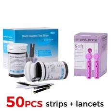 혈당측정기 용 혈당 측정기 글루코미터 혈당 측정기 테스트 스트립 랜싯 포함 건강 관리 도구, 50 Lancets 50 Papers