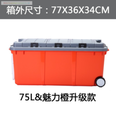 55L 플라스틱상자 하드케이스 이동식 대용량 방수캐리어 캠핑박스 낚시 스쿠버다이빙가방, 바퀴가 달린 수납칸이있는 75L 참 오렌지
