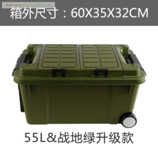 55L 플라스틱상자 하드케이스 이동식 대용량 방수캐리어 캠핑박스 낚시 스쿠버다이빙가방, 바퀴가 달린 55L 전장 그린 벨트 보관함