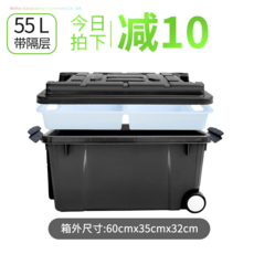 55L 플라스틱상자 하드케이스 이동식 대용량 방수캐리어 캠핑박스 낚시 스쿠버다이빙가방, 55L 우아한 블랙 벨트 수납 공간과 바퀴